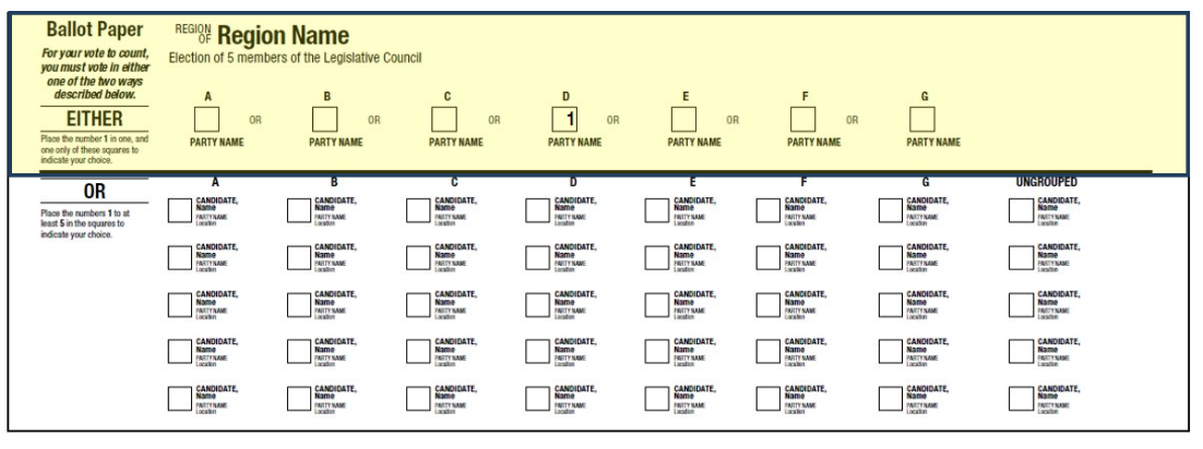 - There will be a thick, black line across the page on ballot papers for the Upper House.